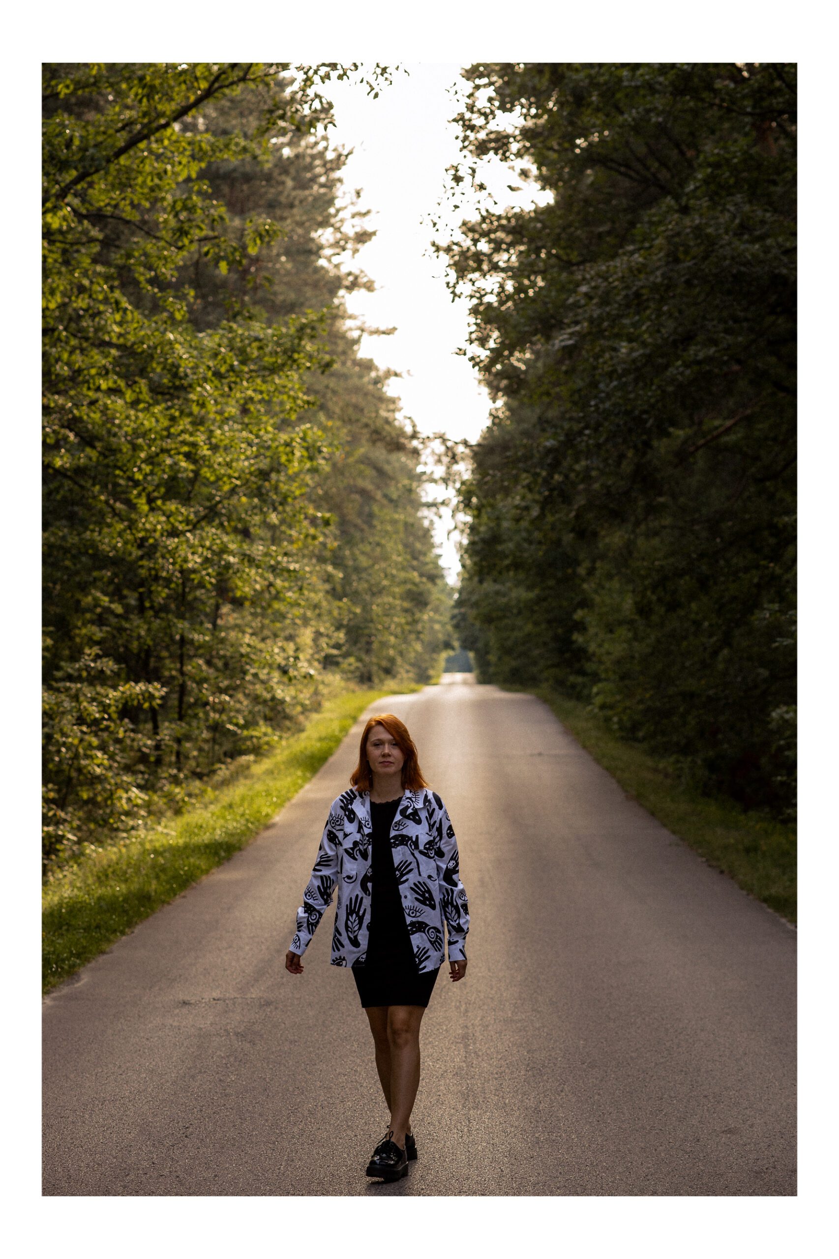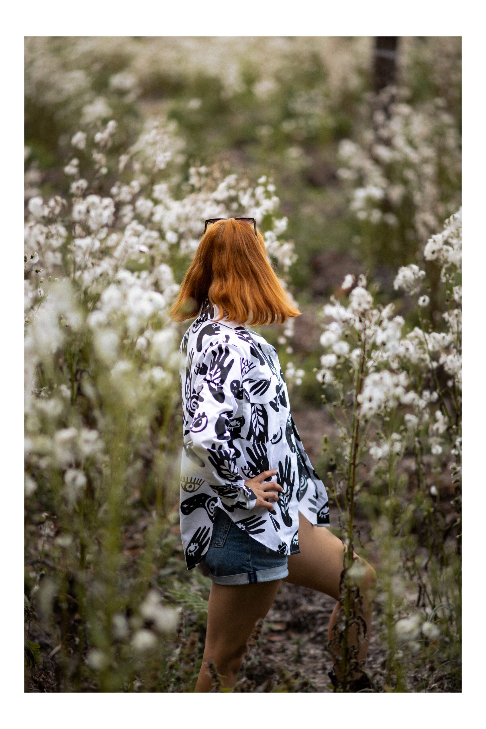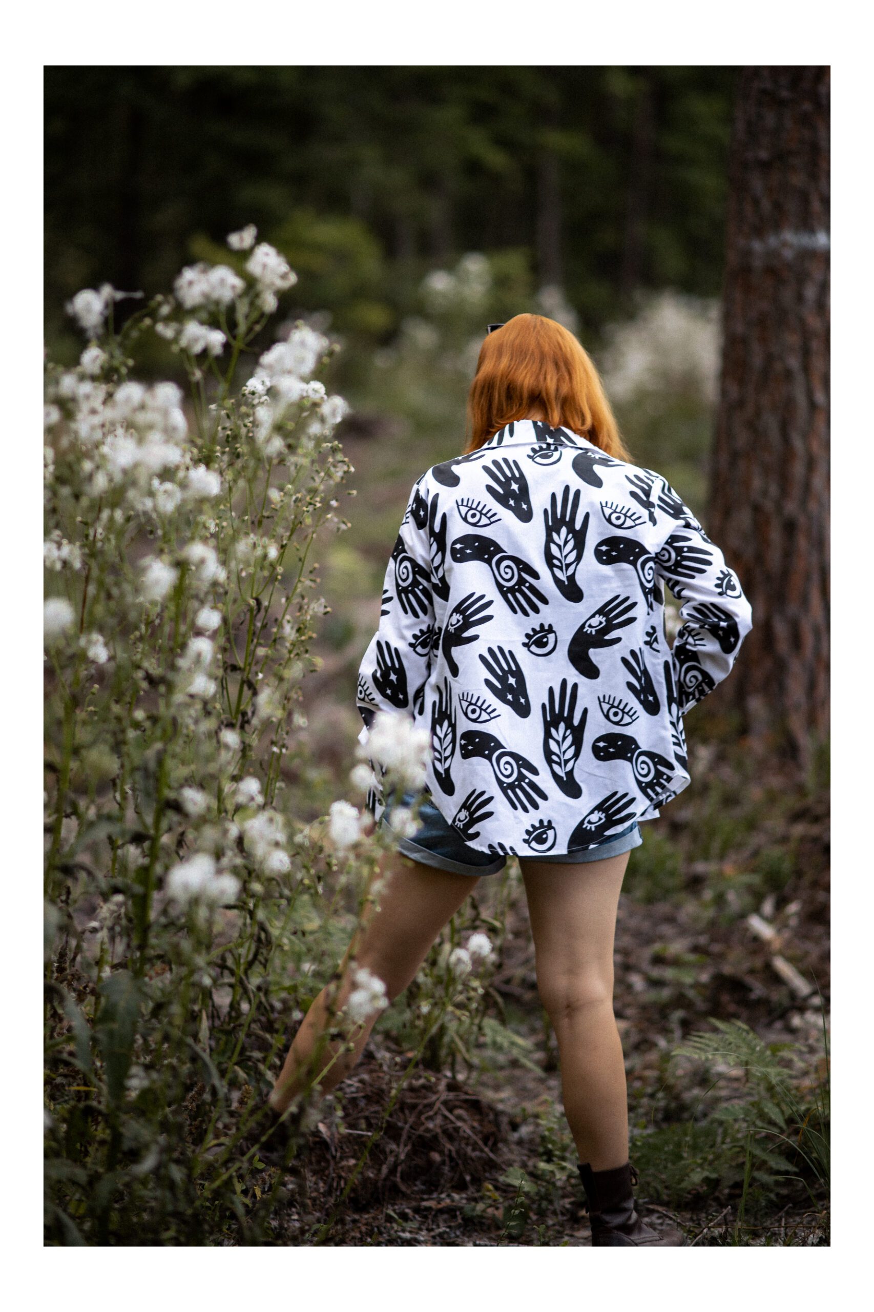 Koszula o kroju oversize, z lekko szerszymi i opadającymi rękawami z mankietem. Koszula uszyta została z bawełny.  Posiada duże kieszenie oraz klasyczny kołnierzyk. Zapinana jest na  guziki. Oryginalny wzór dodaje jej charakteru. Koszula jest bardzo wygodna, można ją nosić na „luźno” z rozpiętymi guzikami, bądź klasycznie.