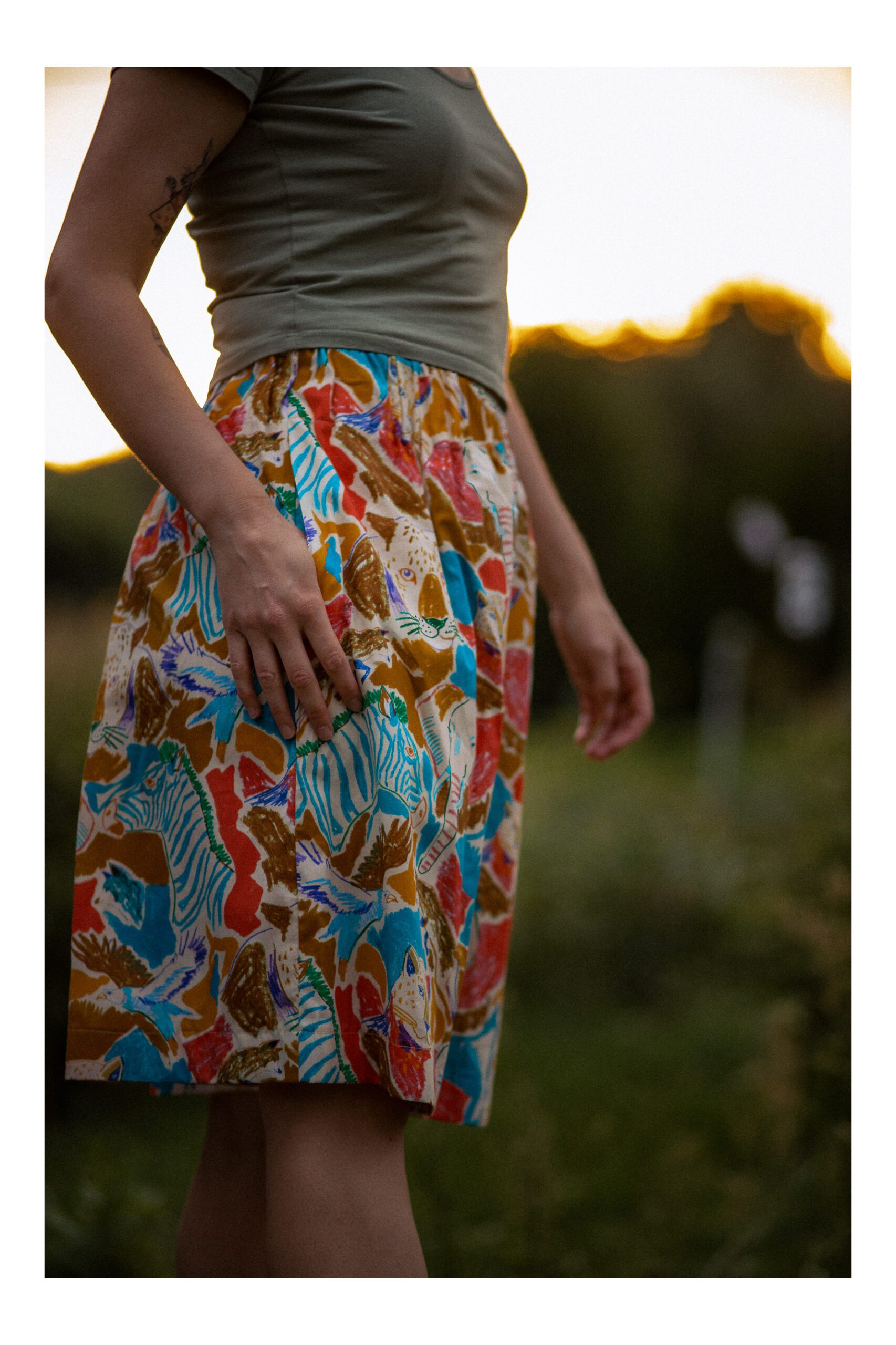 *Wymiary S/M: Długość całkowita: 49 cm, szerokość w pasie (nierozciągnięta guma): 72 cm, szerokość w udzie: 780 cm, stan: lekko podwyższony