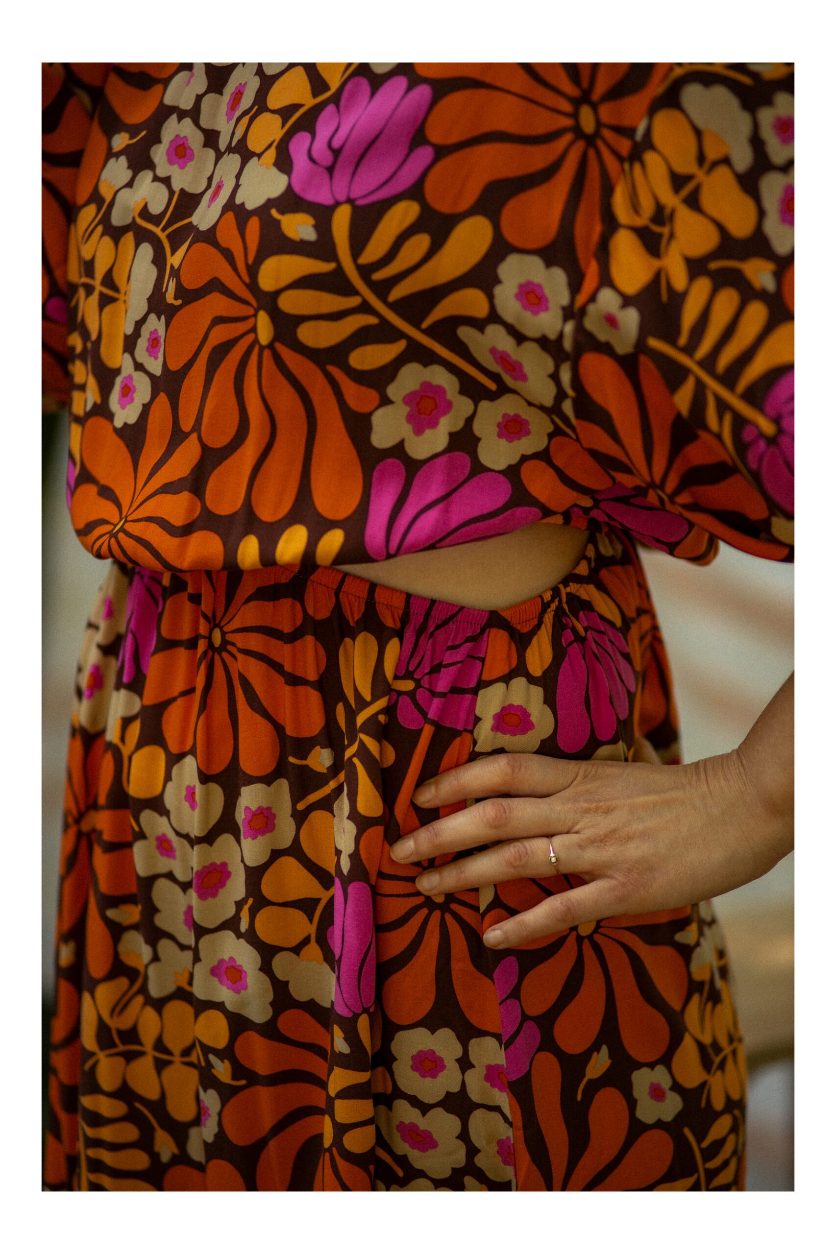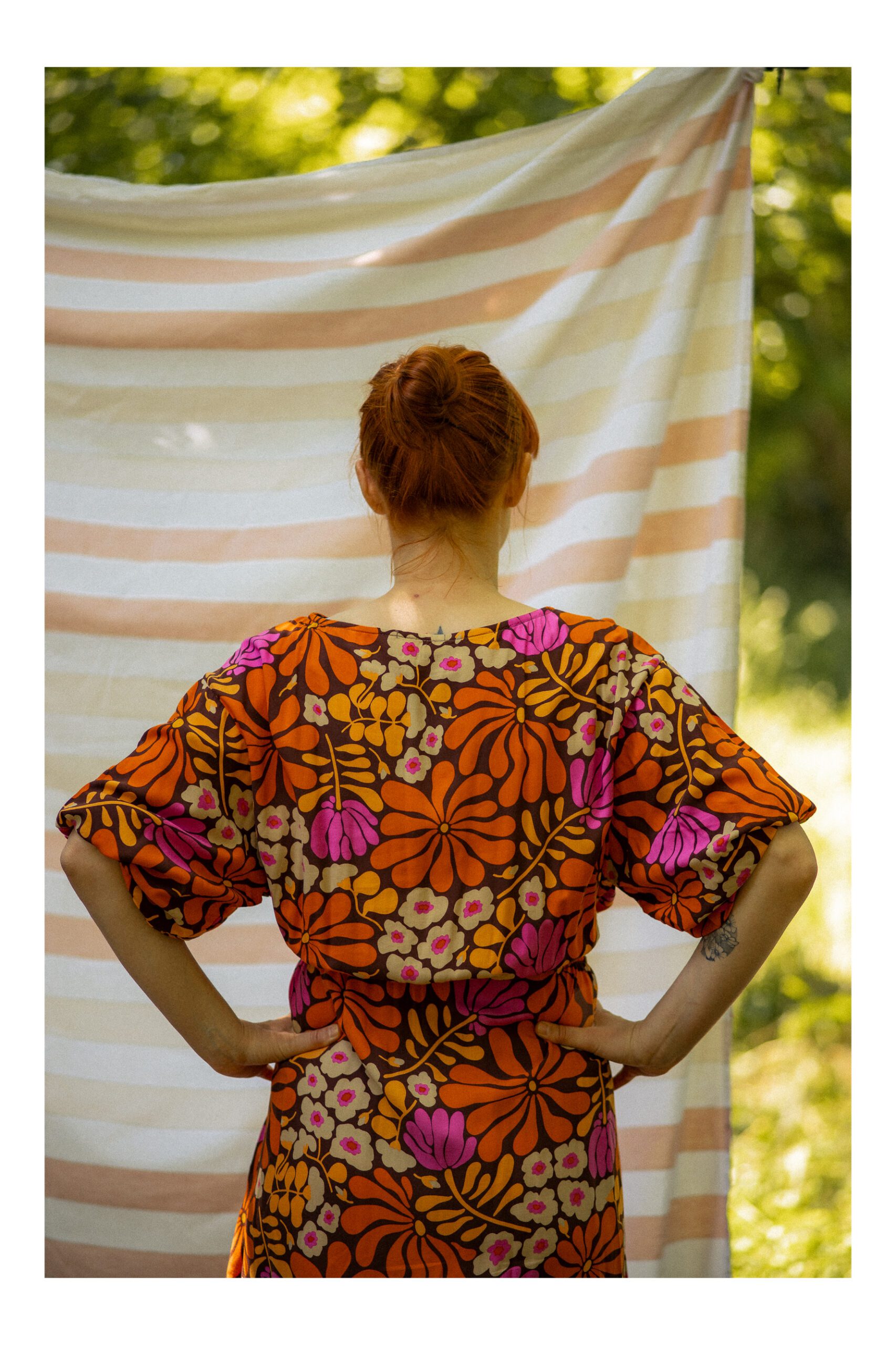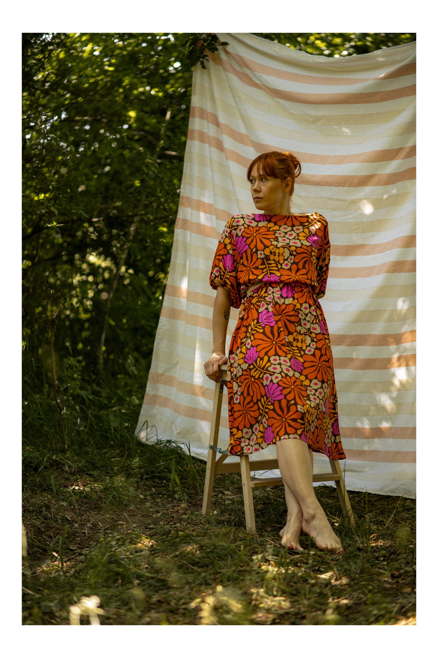 Zwiewna sukienka z bufiastymi rękawami. Wycięcie w tali oraz delikatność materiału sprawią, że poczujesz się kobieco i lekko jednocześnie. Dodatkowo w pasie wszyta zostala guma, która dopasowuje się do ciała. Rozkloszowany dół oraz długość midi sprawiają, że sukienka pięknie układa się w ruchu. Idealna na letnie słoneczne dni.