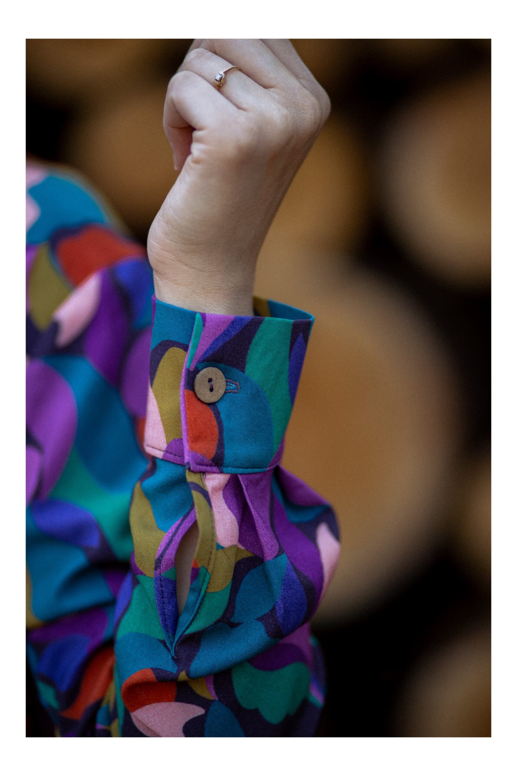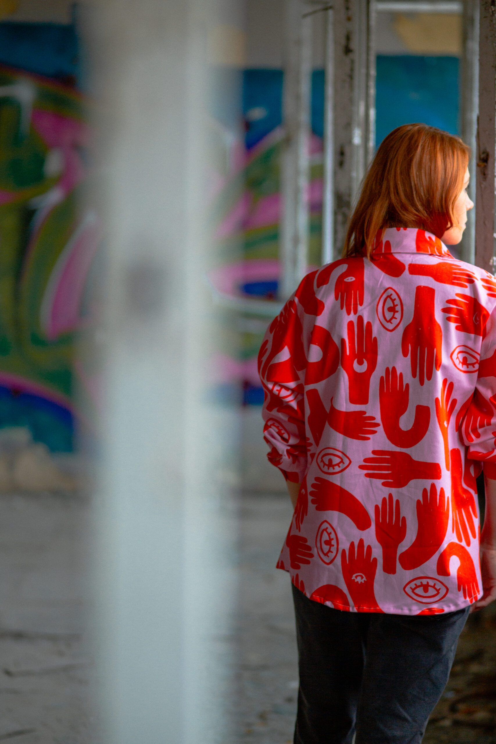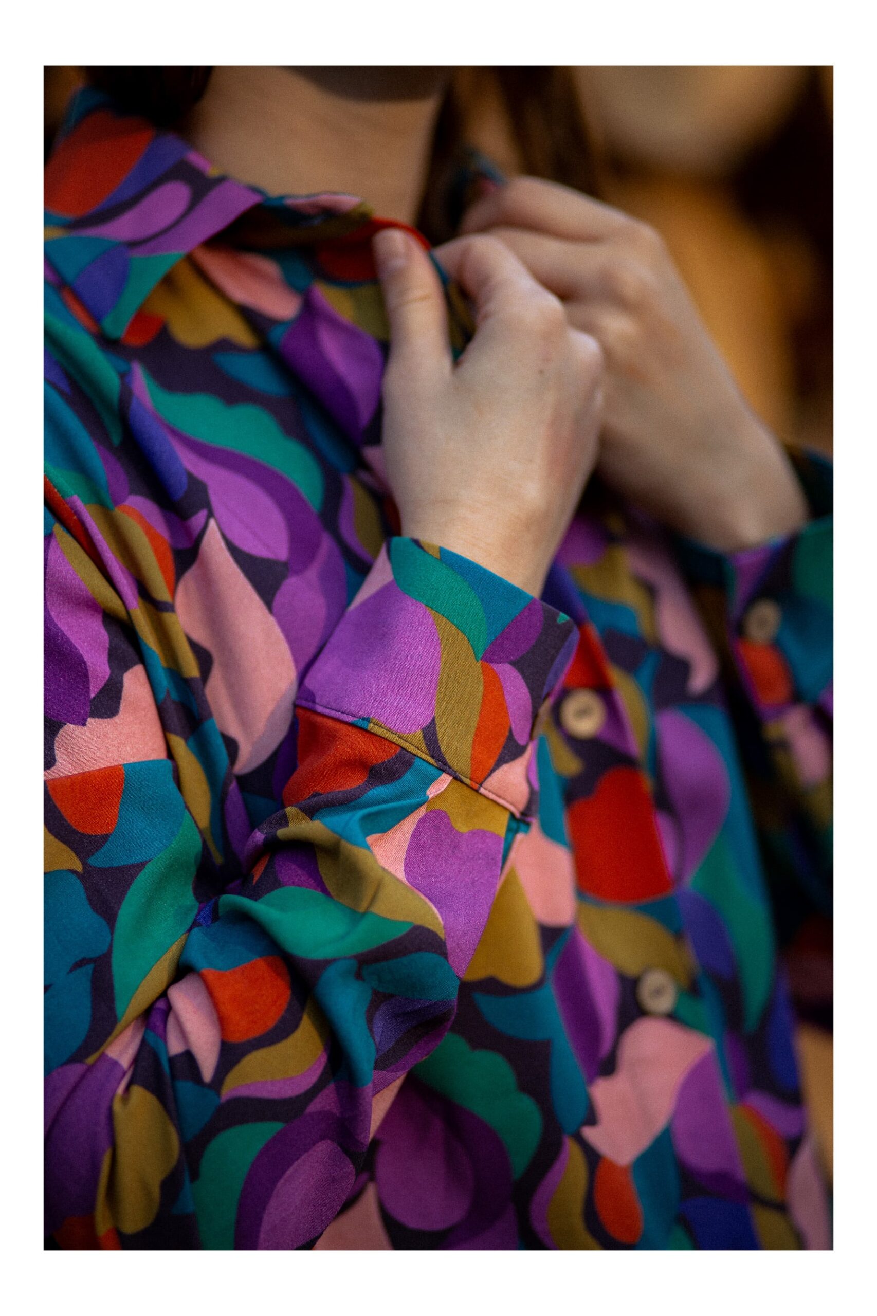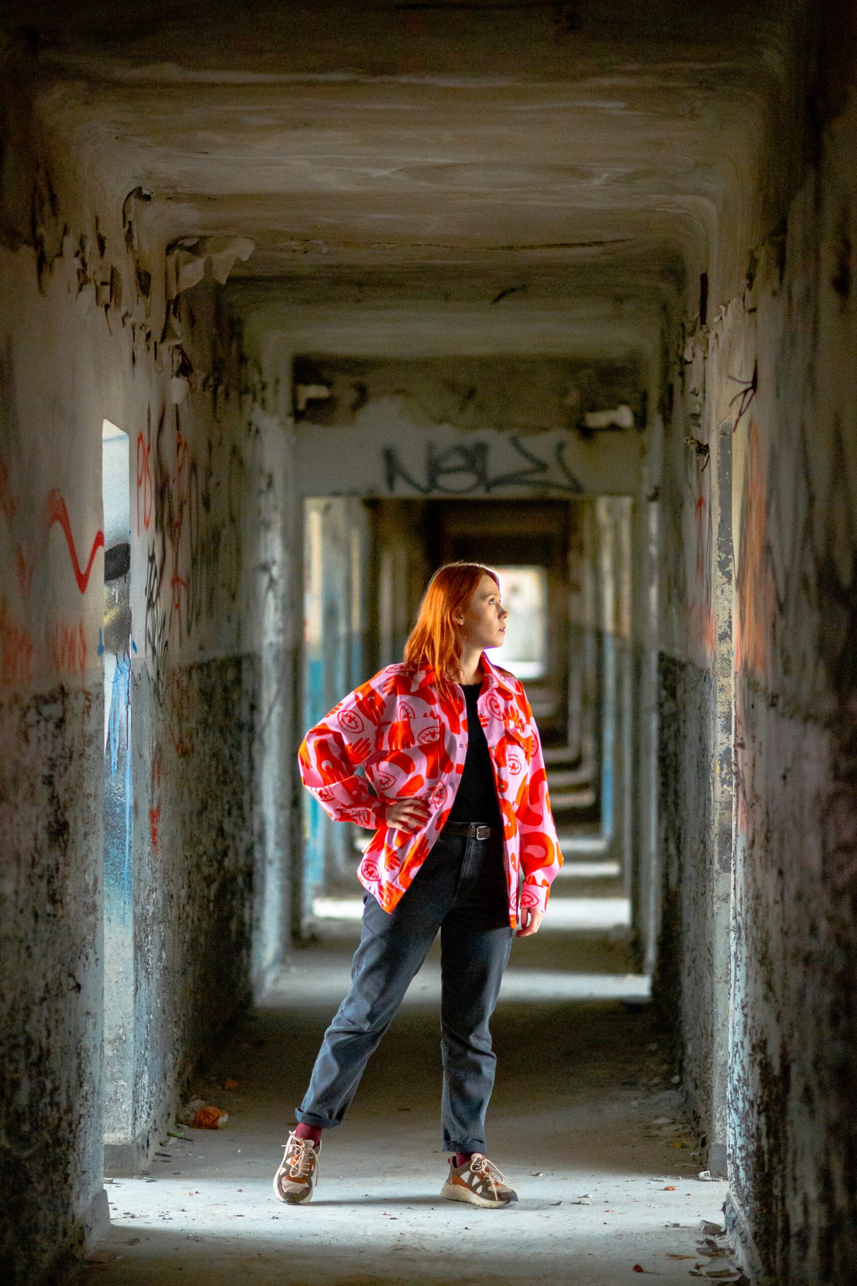 Koszula o kroju oversize, z lekko szerszymi i opadającymi rękawami z mankietem. Posiada duże kieszenie oraz klasyczny kołnierzyk. Zapinana jest z przodu, na zatrzaski*. Koszula uszyta została z grubszej bawełny, ma strukturę jeansu. Bardzo przyjemna w dotyku. Można ją traktować jako okrycie wierzchnie. Swoim oryginalnym wzorem dodaje charakteru. Możesz poczuć się w niej wyjątkowo.
