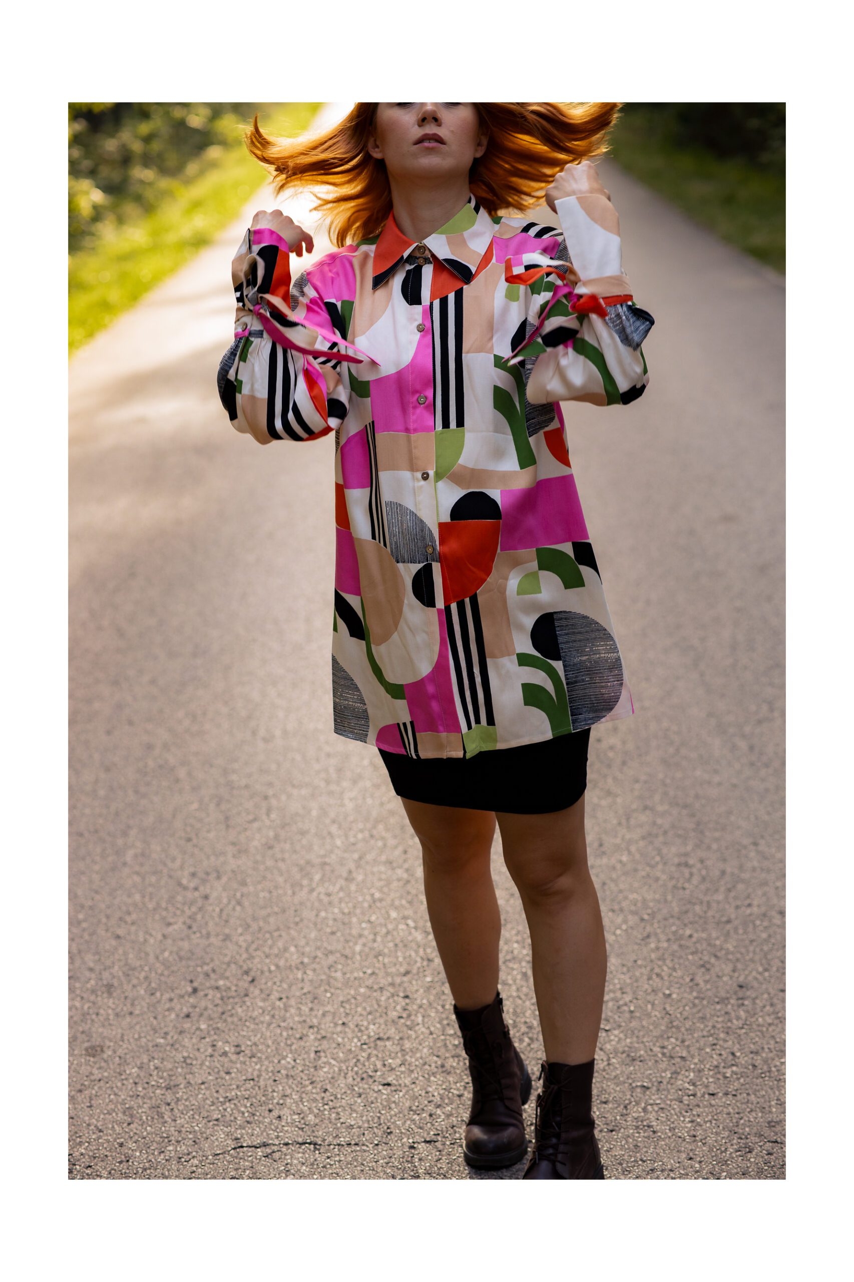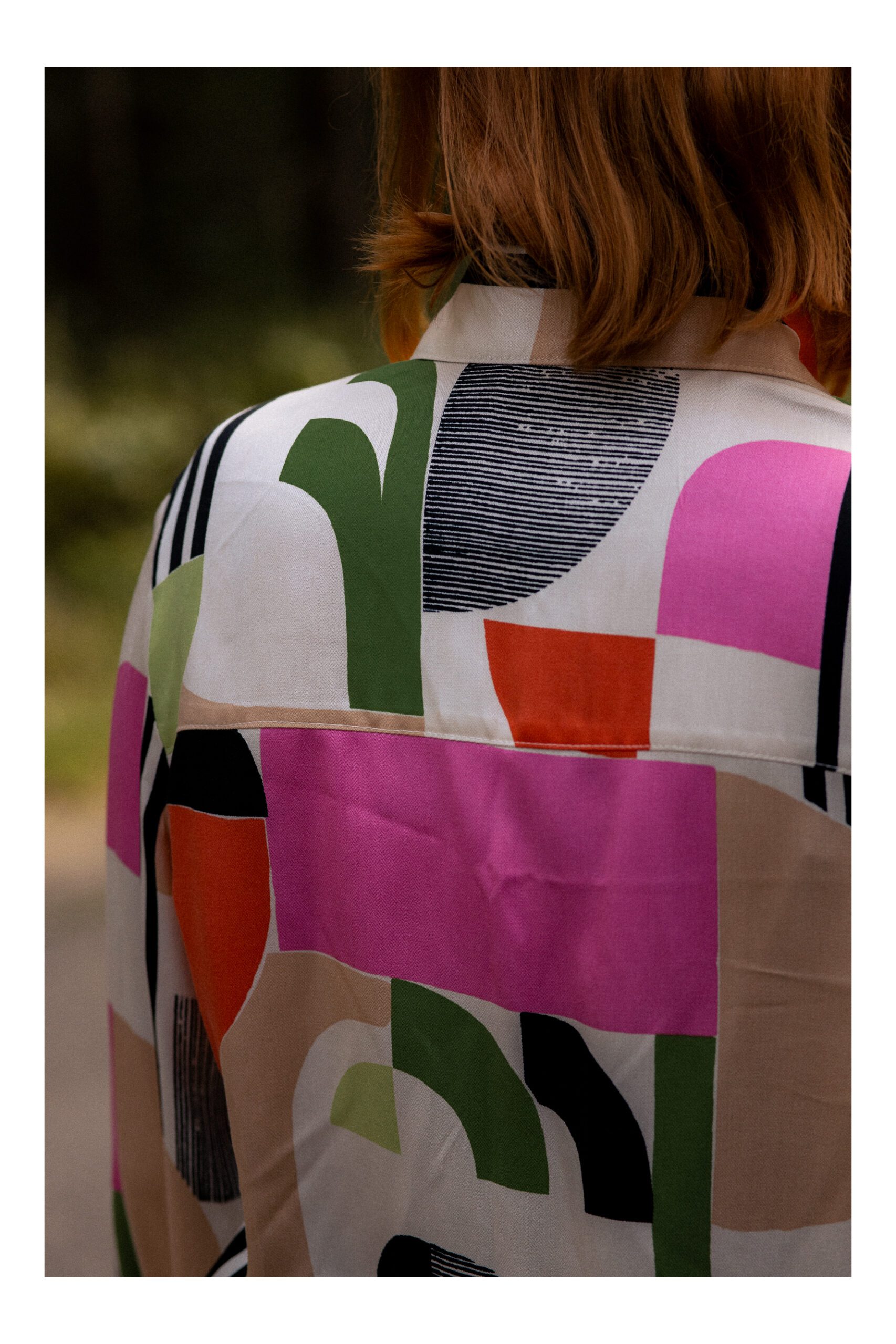 Koszula uszyta z wiskozy, co sprawia, że jest lekka i zwiewna.