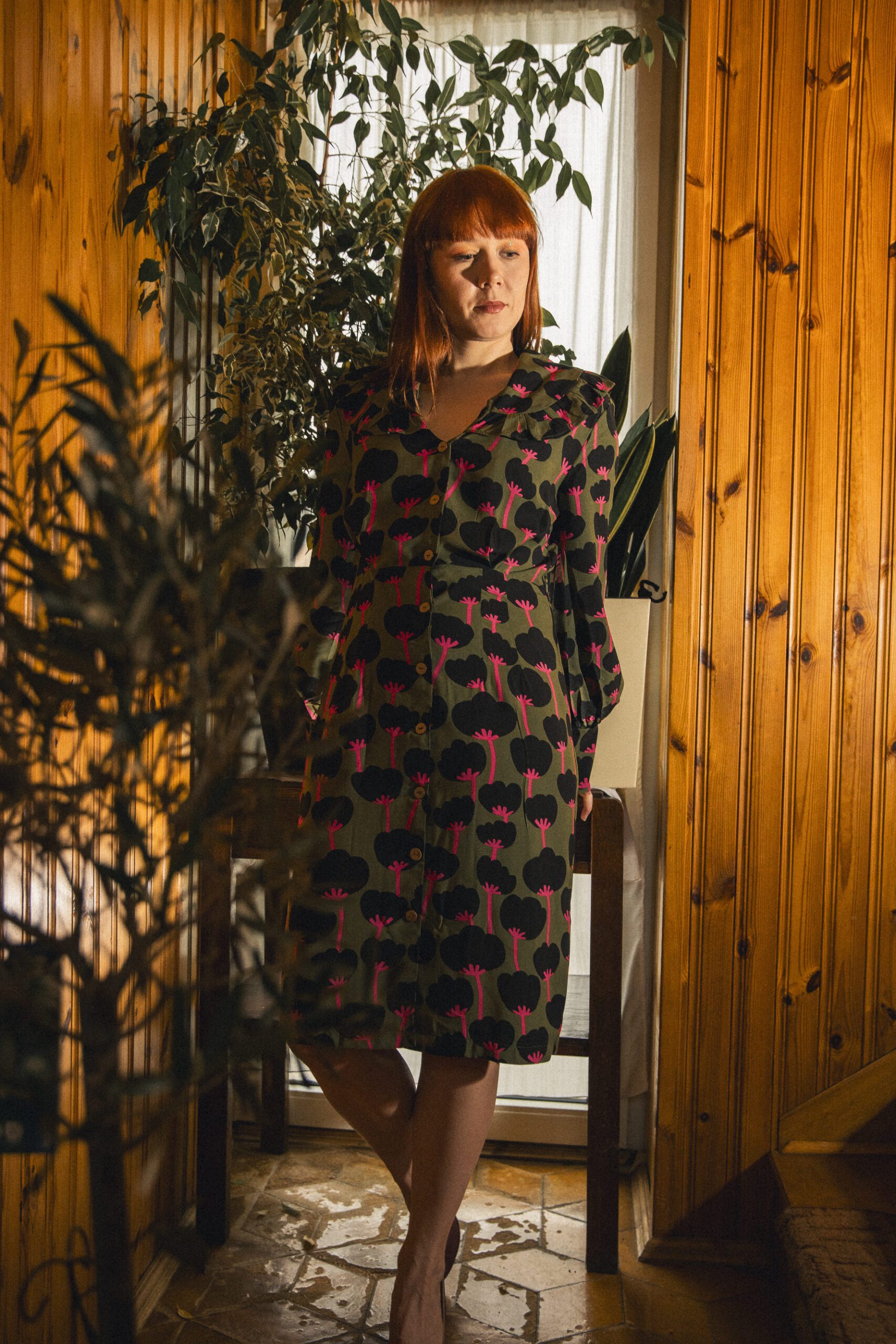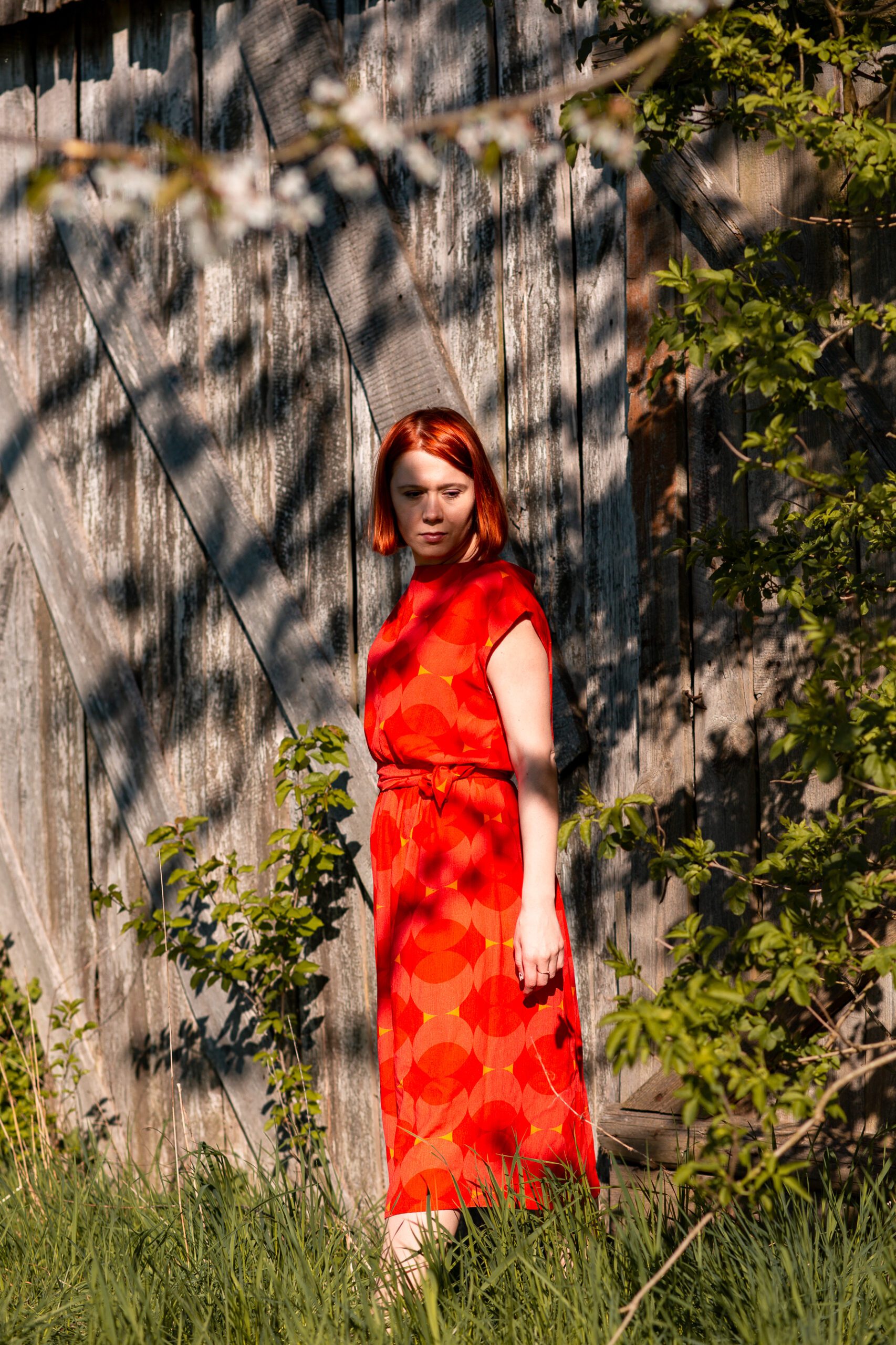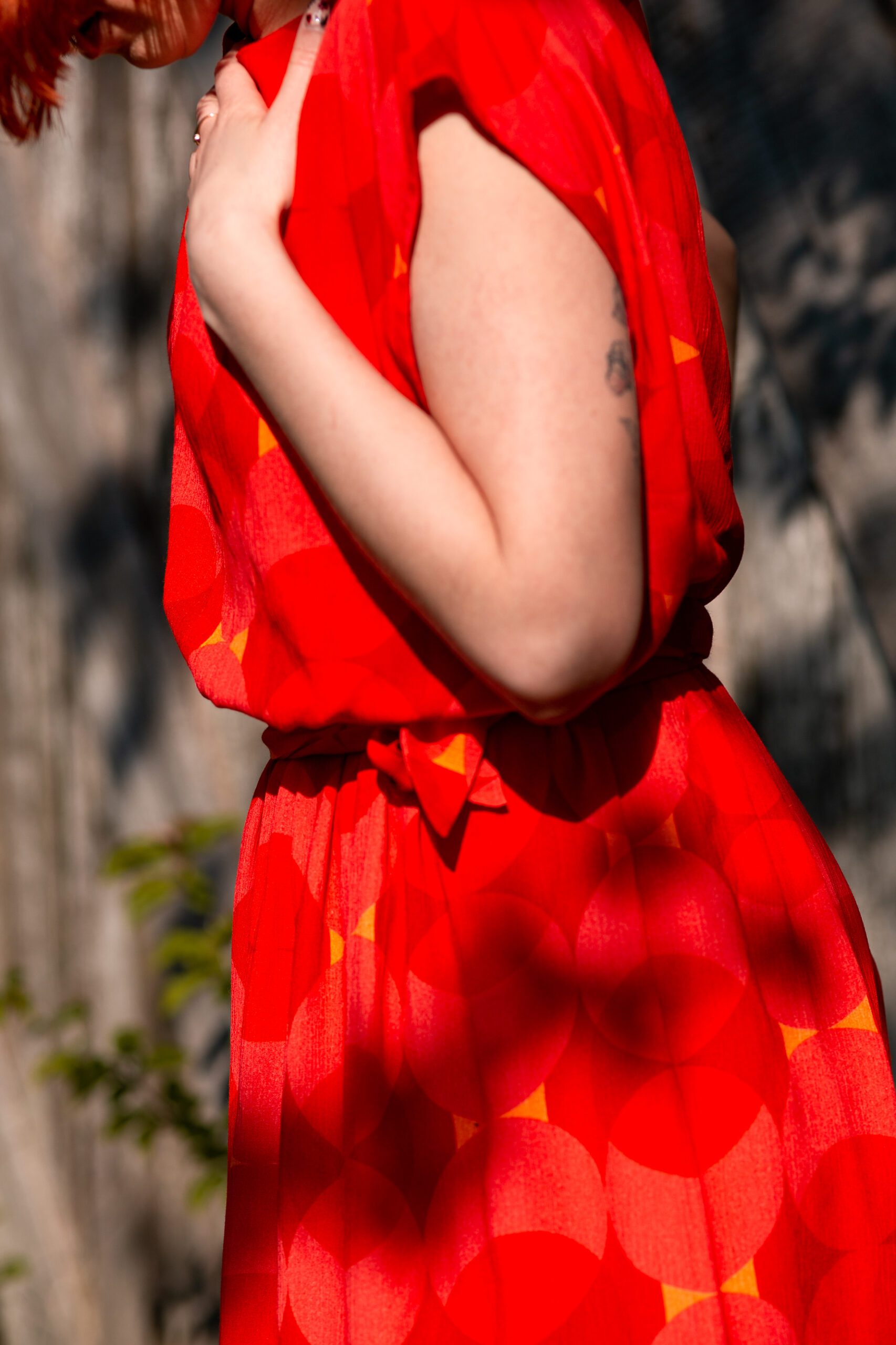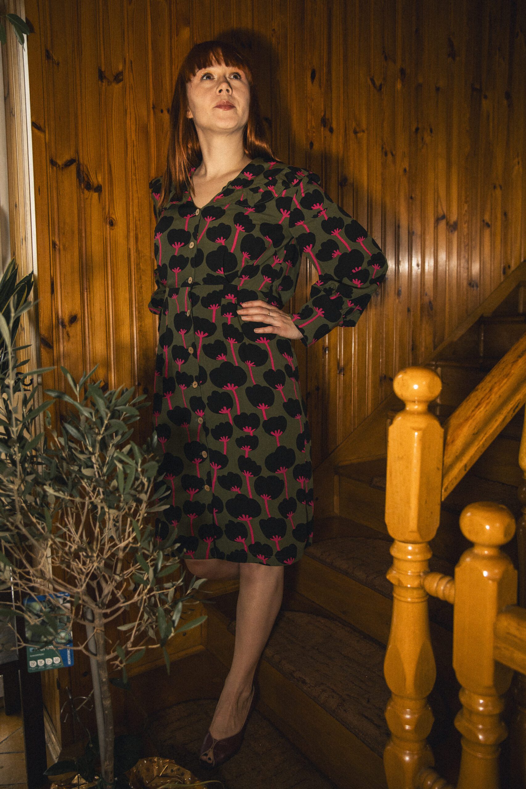 Sukienka o prostym, luźnym kroju, z dekoltem w tzw. łódeczkę. Posiada lekko opadający rękaw. Sukienka w pasie wszytą ma gumkę, aby podkreślić bardziej talię można przewiązać ją paskiem. Wzór to duże, czerwone koła. Sukienka jest bardzo miękka i miła w dotyku, uszyta z wiskozy ecovero, tzn. że powstaje z mniejszym, negatywnym wpływem człowieka na środowisko niż standardowy materiał wiskozowy. Jest niesamowicie przewiewna, idealna na letnie dni. Może być w wersji zarówno eleganckiej, jak i do codziennego „biegania”.